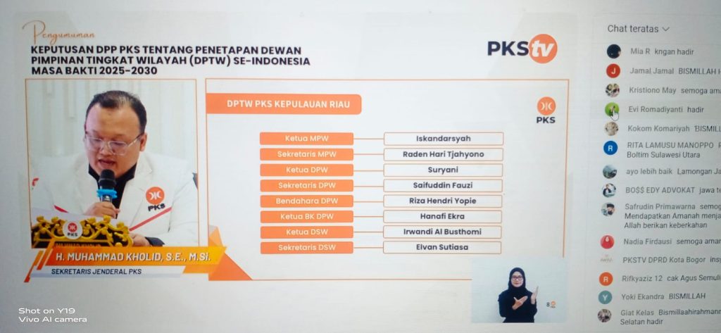 TANJUNGPINANG – Dewan Pimpinan Pusat Partai Keadilan Sejahtera (DPP PKS) resmi menunjuk Suryani sebagai Ketua Dewan Pimpinan Wilayah (DPW) PKS Kepulauan Riau (Kepri) untuk periode 2025–2030. Pengumuman ini disampaikan langsung oleh Sekretaris Jenderal DPP PKS, Muhammad Khalid, dalam pengumuman resmi Surat Keputusan Dewan Pimpinan Tingkat Wilayah (DPTW) PKS Kepri, Kamis (24/07/2025). Menurut Muhammad Khalid, penunjukan […]